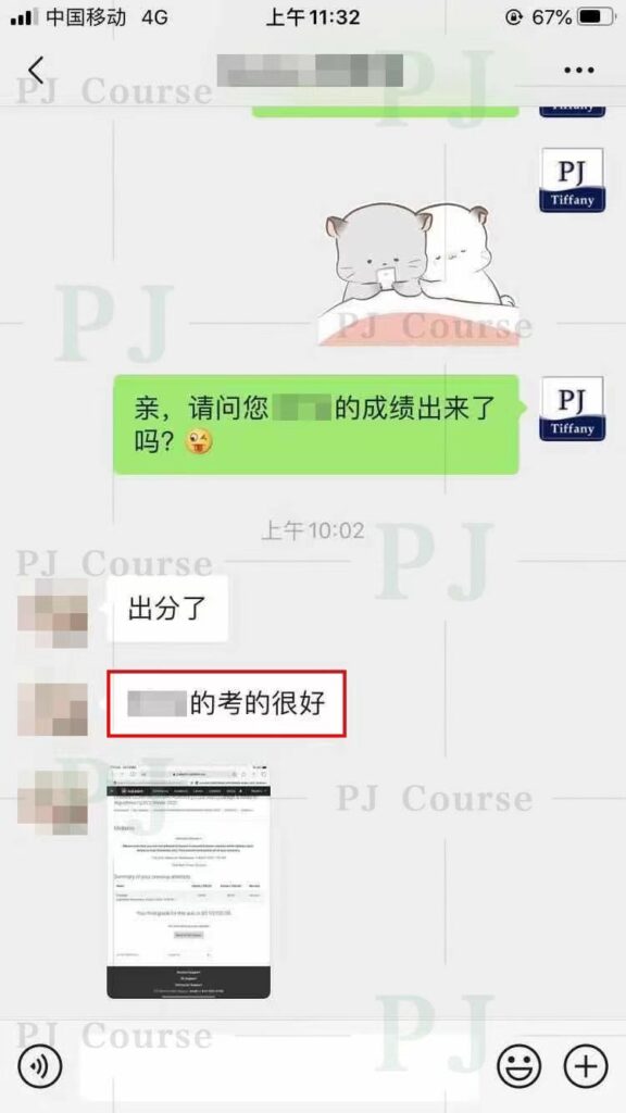 PJ Course 考试案例分享 2021年3月18日 😃💁点击免费咨询论文代写、考试代考专家 最近PJ Course帮助一位来自加拿大本科大三的留学生做了代考:出分 93/100, 为同学拿到满意成绩! 以下是微信对话截图: 最终出分截图: 👍🤓点击免费咨询Essay代写、考试代考专家 Share on Facebook Share on twitter